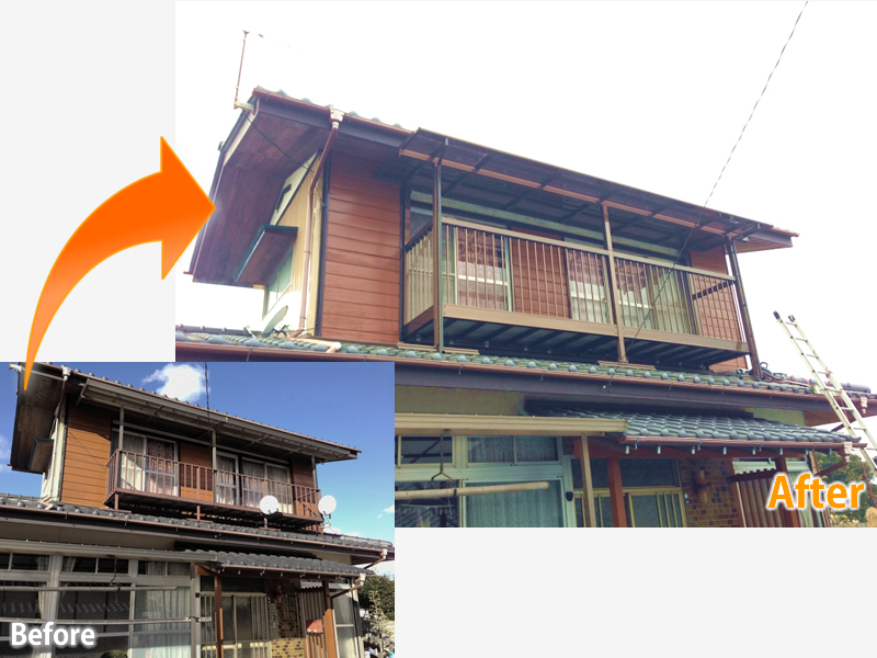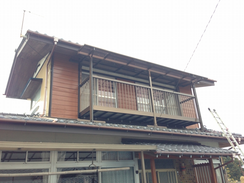 鉄製のベランダが古くサビついてしまっていて、危険なので交換したいとのご要望でした。古いベランダは撤去し、屋根付きバルコニーの設置取り付け工事を行いました。